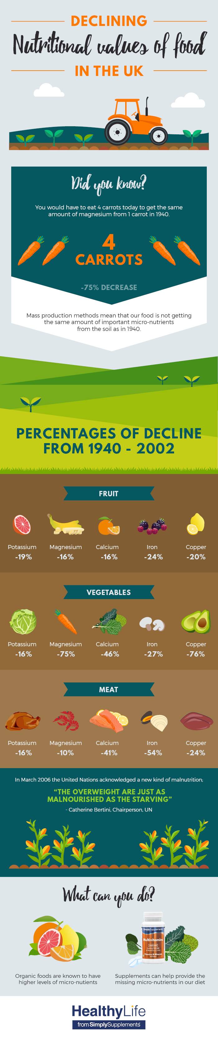 While some foods may not be as nutritious as they once were, this certainly isn’t a reason to ditch healthy foods in favour of processed, fatty alternatives. Freshly grown fruits and vegetables remain the best source of nutrients and antioxidants and still offer many health benefits. It’s just that we need to consume more than we did in the past.